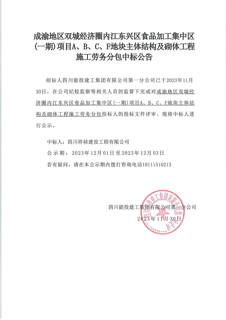 下一条:成渝地区双城经济圈内江东兴区食品加工集中区(一期)项目ABCF地块建筑与装饰工程、钢结构工程、安装工程、园区总图工程、园区市政道路工程材料、设备采购流标公告