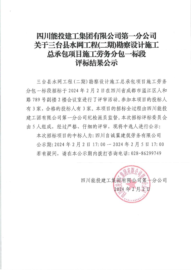 通川区魏兴污水处理工程(二期)建设项目(除商混外)其他材料设备采购中标公告