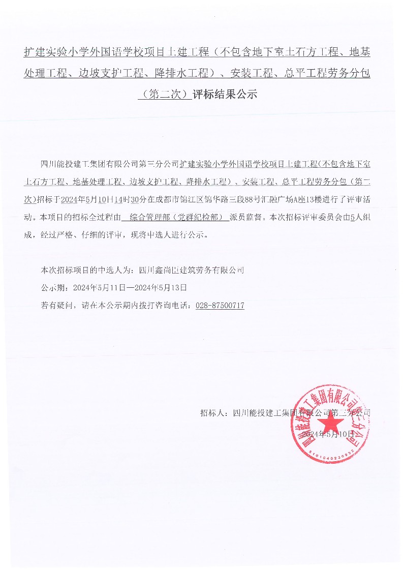 下一条:扩建实验小学外国语学校项目土建工程(不包含地下室土石方工程、地基处理工程、边坡支护工程、降排水工程)、安装工程、总平工程劳务分包(第二次)招标公告