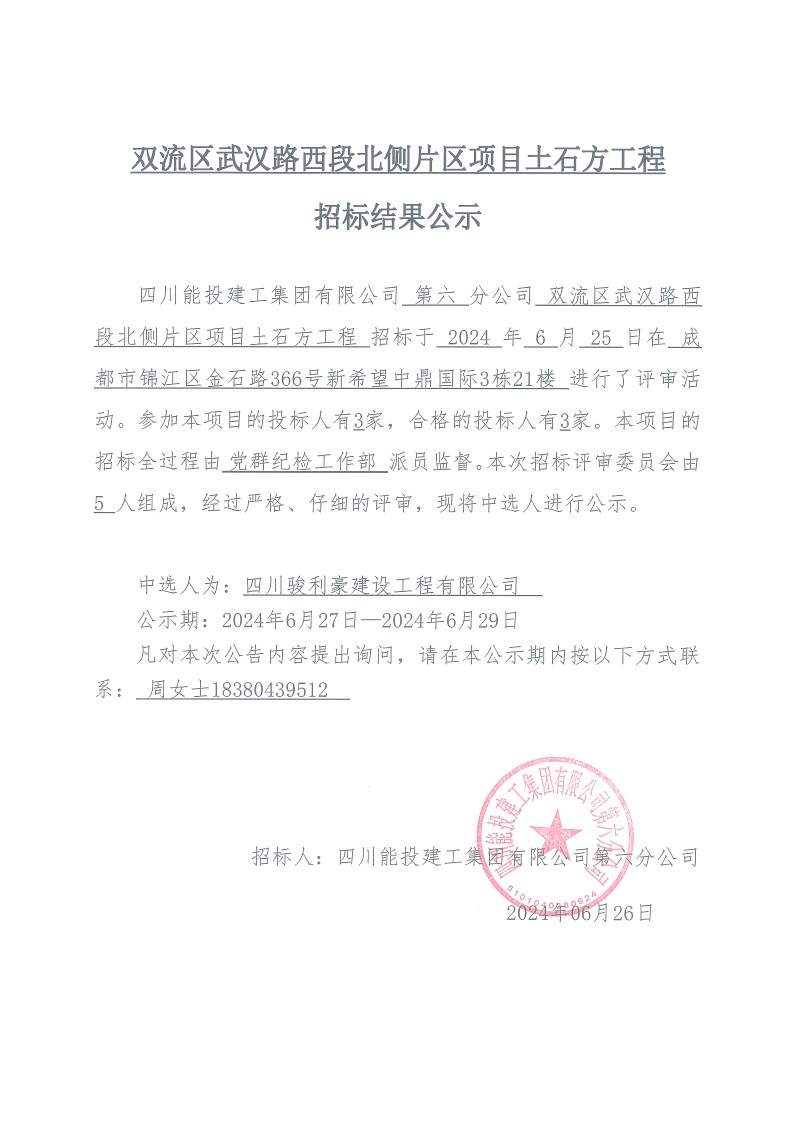 双流区武汉路西段北侧片区项目基础工程结果公示