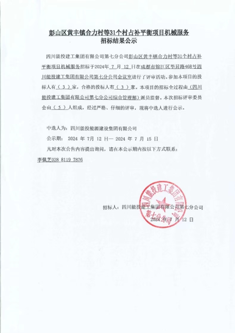 彭山区黄丰镇合力村等31个村占补平衡项目机械服务结果公示