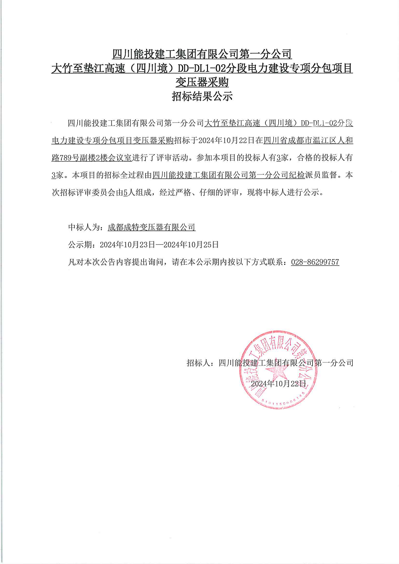 下一条:大竹至垫江高速(四川境)DD-DL1-02分段电力建设专项分包项目一次设备采购招标结果公示