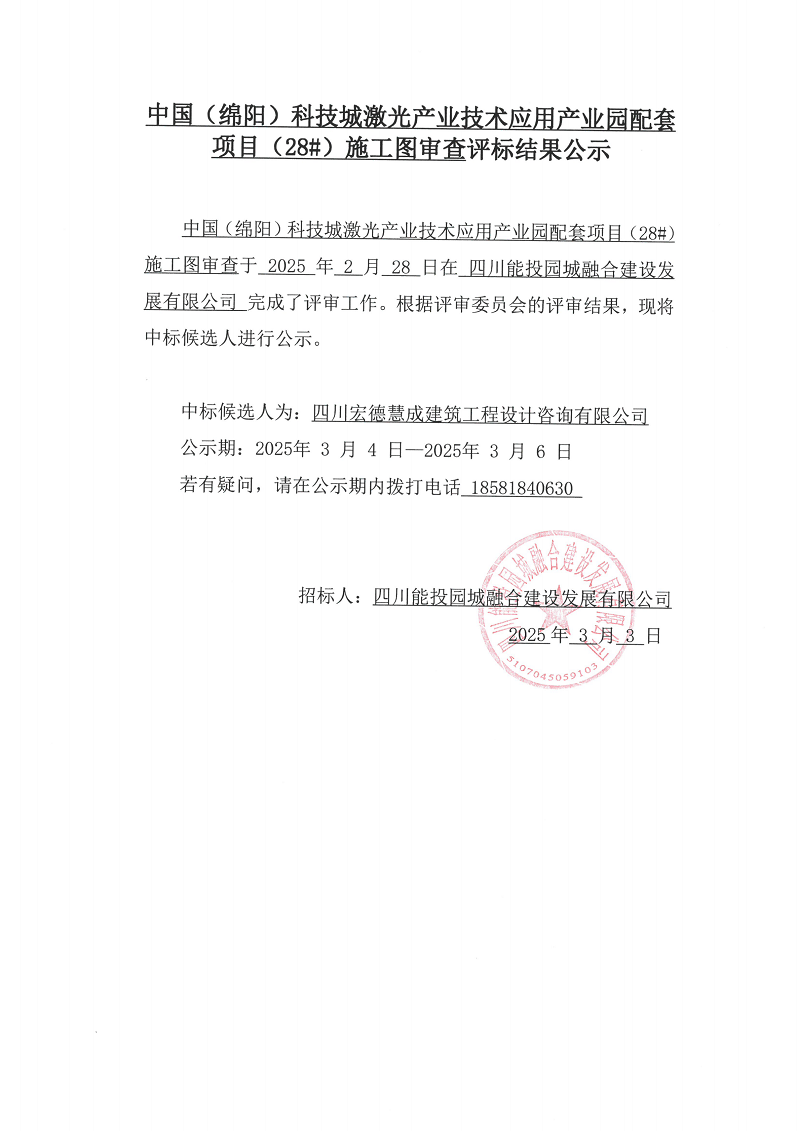 上一条:中国(绵阳)科技城激光产业技术应用产业园配套项目(28#)水土保持方案报告及竣工验收技术评估评标结果公示