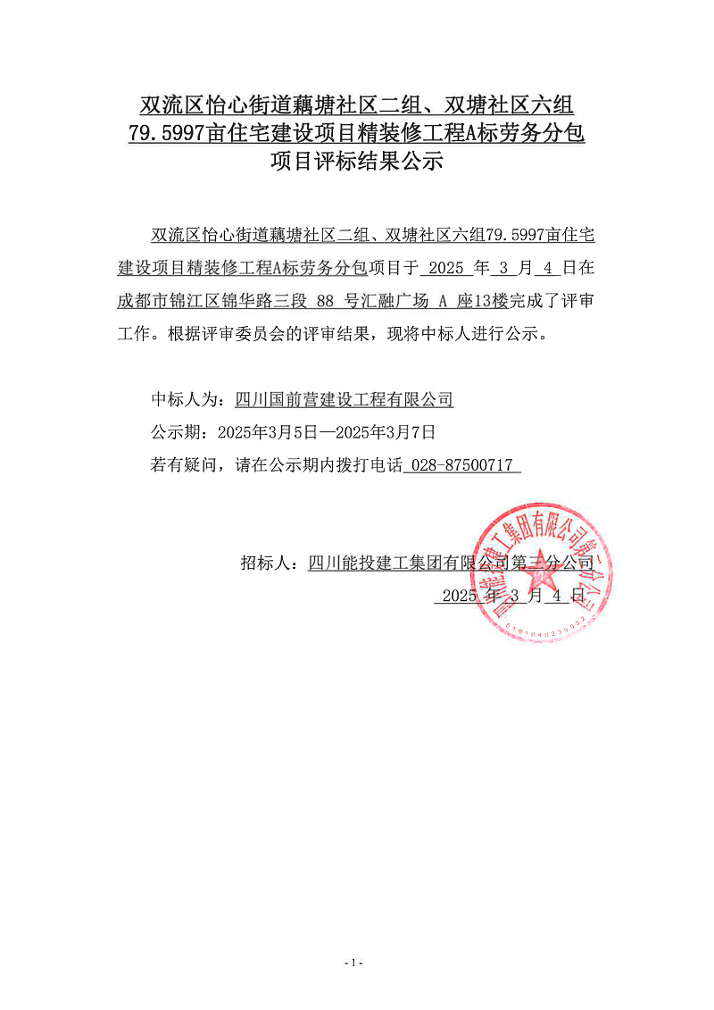 下一条:中国(绵阳)智慧农业应用产业园项目(二标段)消防工程专业分包项目评标结果公示
