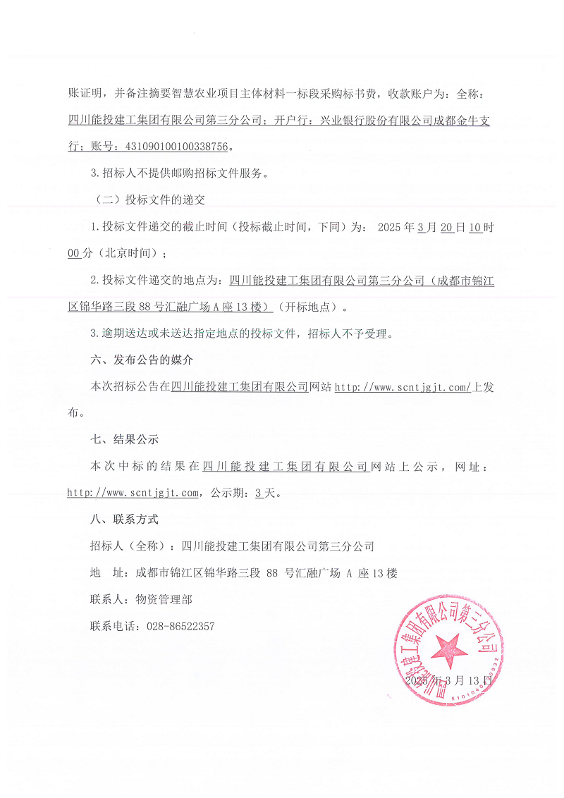 中国(绵阳)智慧农业应用产业园项目(二标段)主体材料采购二标段招标公告