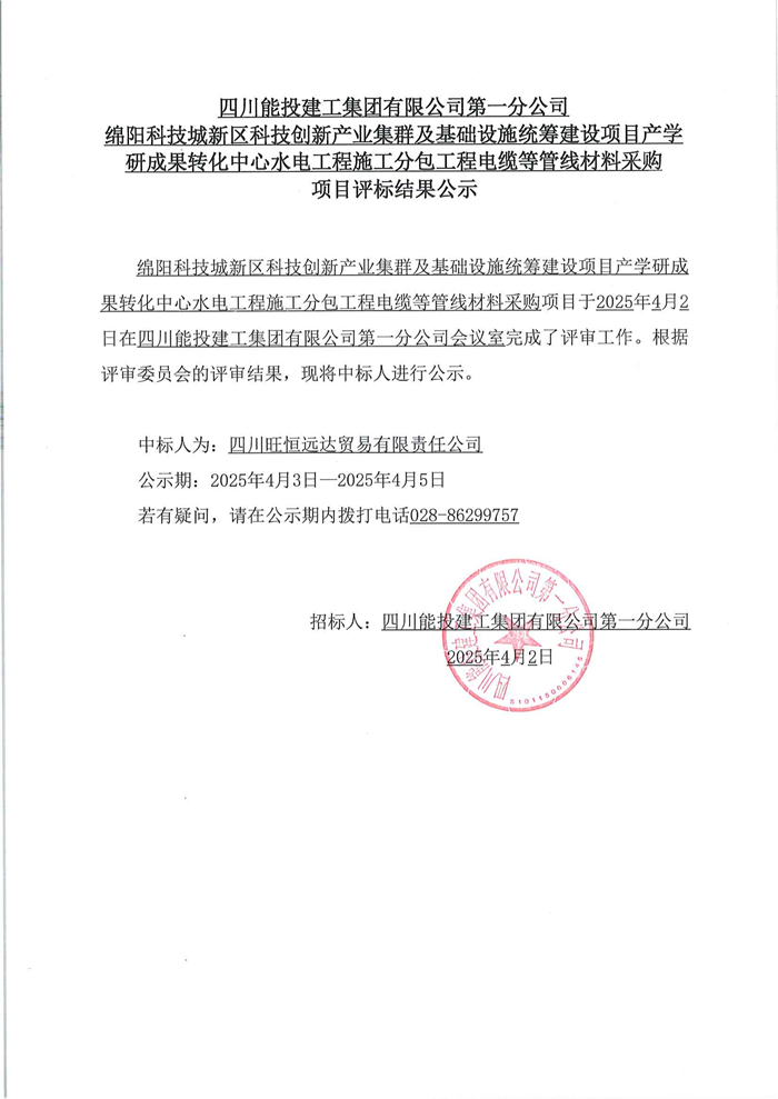 下一条:绵阳科技城新区科技创新产业集群及基础设施统筹建设项目产学研成果转化中心水电工程施工分包工程施工劳务分包二标段评标结果公示