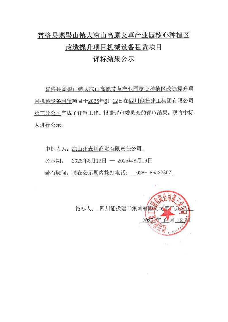 下一条:普格县螺髻山镇大凉山高原艾草产业园核心种植区改造提升项目劳务分包项目评标结果公示