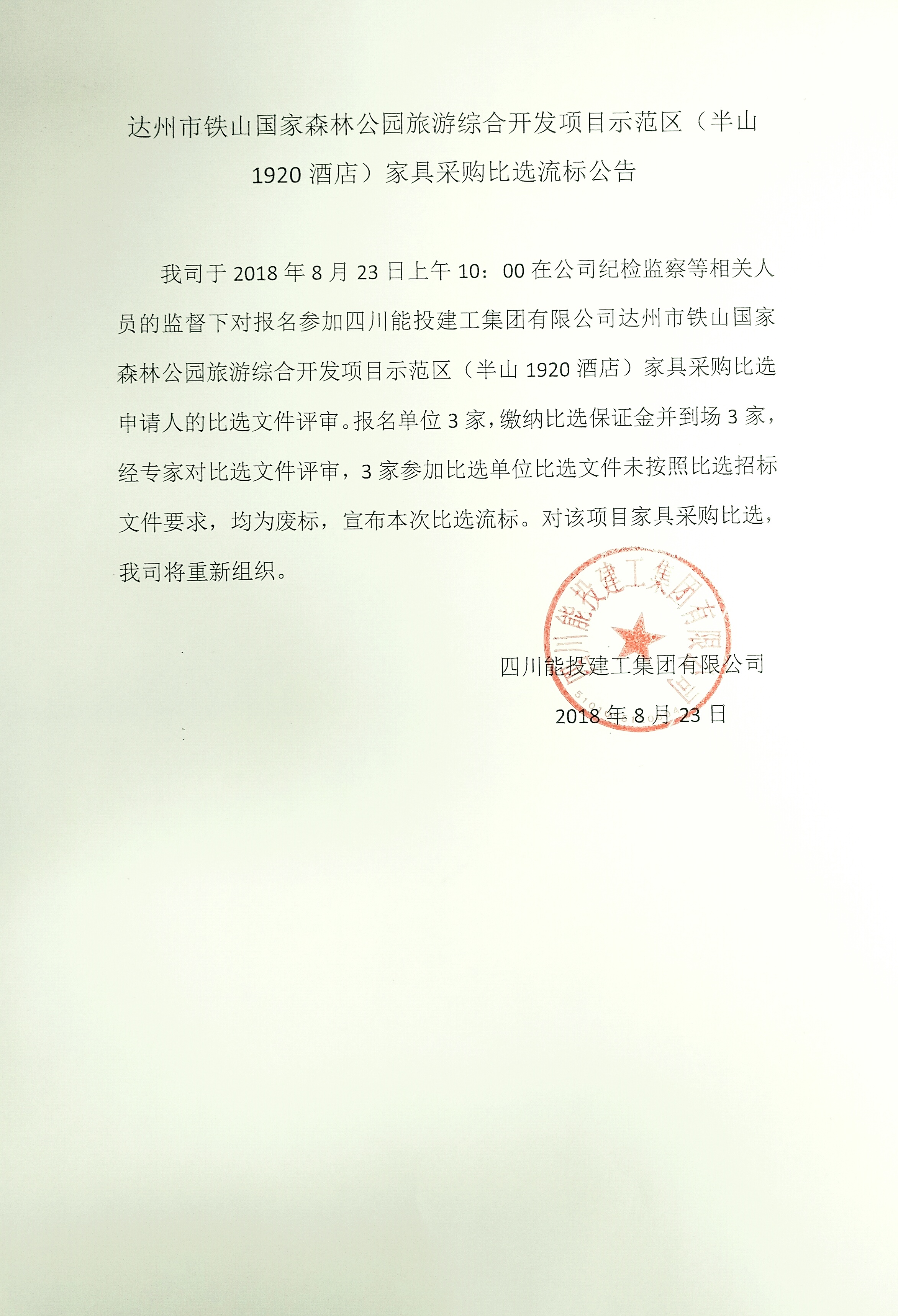 上一条:达州市铁山国家森林公园旅游综合开发项目示范区(半山1920酒店)家具采购比选(第二次)公告